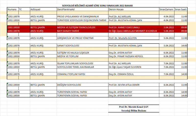 Azami süre sınav programı ekte paylaşılmıştır. Sınavlara girecek öğrencilerimize başarılar dileriz. Güncelleme 31.03.2022