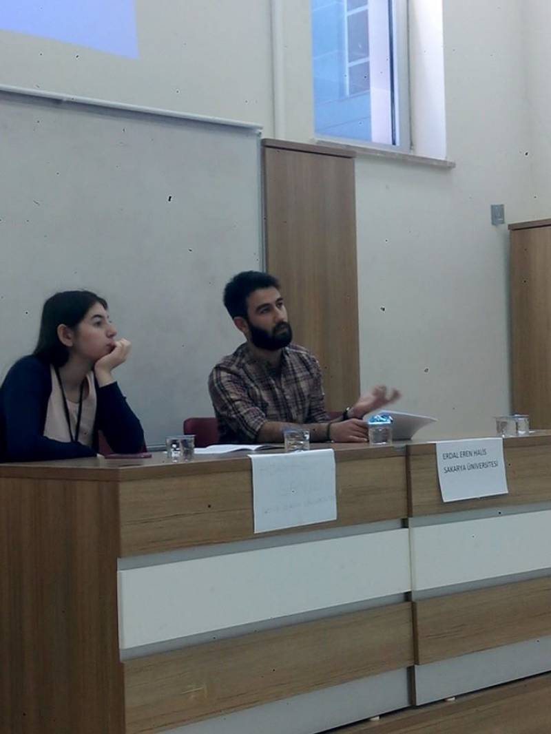 Türkiye’deki çok sayıda Üniversiteden katılımın sağlandığı ve Bölümümüz öğrencilerinden Büşra Çatalbaş, Oğuzhan Atalar, Erdal Eren Halis, Başak Demirkol ve Dilan Kurtye ‘nin katıldığı programda, toplumsal cinsiyet, kadın-erkek çalışmaları, kapitalizm ve tüketim, demokrasi-hak-hukuk, medya, sinema, ötekileştirme, şiddet, emek, kadın hareketleri, toplumsal statü vb. alanlarda birçok konu sunuldu. • Büşra ÇATALBAŞ’ın “Medya Aracılığı ile Kitlelere Yapılan Propaganda”, Dilan KURTYE’nin “Medyada Kadın Algısı”, Erdal Eren HALİS’in “Modern Yalnızlık”, Başak DEMİRKOL’un “Kapitalist Sistemde Kent ve Mekan Algısı ve Tarih-Sosyoloji ilişkisi” konulu bildirilerini sunmasından ve programın bitişinden sonra, bildiri sunan öğrenciler, Kongreye katılmaktan çok memnun olduklarını, programın başarılı geçtiğini, düzenleyen ekibe teşekkür ettiklerini ve Sakarya Üniversitesi Sosyoloji Bölümünü, Türkiye’nin her tarafından katılımın sağlandığı böyle bir programda temsil etmekte mutlu olduklarını belirttiler. Öğrencilerimizi tebrik ediyor, başarılarının devamını diliyoruz.
